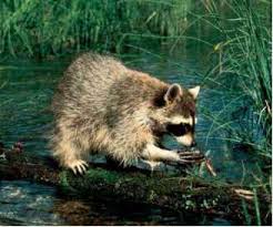 Raccoons may be small creatures, but they are mighty when it comes to hunting. When they are climbing they use their sharp claws so that they can climb up to get bird eggs without falling. When they are swimming they use their legs to swim and their fast paws to catch food like fish, frogs, and crayfish. Raccoons are clever enough to wet their food. They do this because they are trying to gather more information.