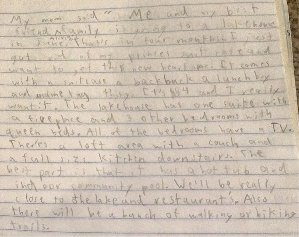 The qualities I look for in a good friend are the qualities I think I have too. The most important qualities to me are fun, kindness, and following the rules. First, I look for a friend that is fun! For example, I like to explore in the woods and I want a friend that will explore with me. Next, it’s important to be kind. I think it’s important to show kindness or else you’re mean. I don’t want to have or to be a mean friend. Last, a friend of mine follows the rules. I always follow the rules and I want a friend who does the same so they don’t get us into trouble. These are the qualities that make a good friend.